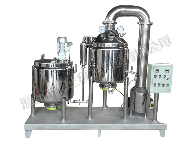 9、根據(jù)經(jīng)驗,大約40分鐘左右,濃縮完畢,停止加熱,關(guān)閉真空泵抽氣閥,打開濃縮罐排空閥,真空度降到常態(tài)后,開啟出料閥放料,同時應(yīng)將回收罐中的水放凈,以備下次工作。